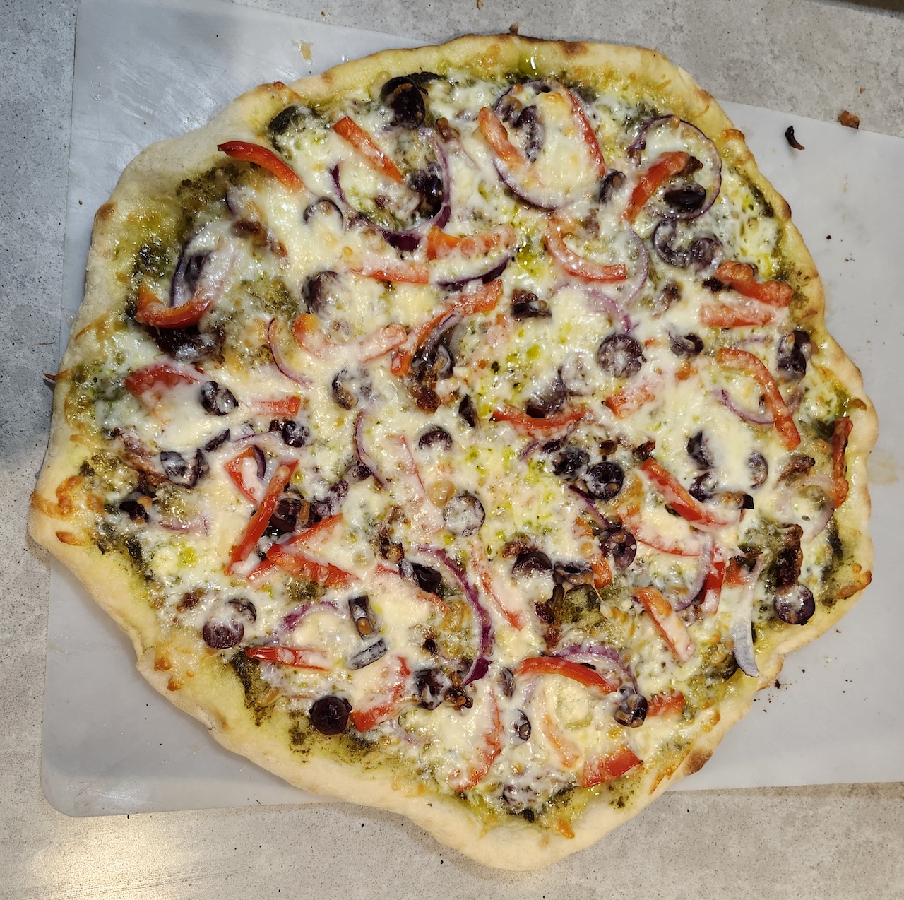 - Pesto - 2023 Sherwin Gardens Basil Pesto Sauce, Feta Cheese, Kalamata Olives, Red Onion, Sun Dried Tomatoes, and Mozzerella