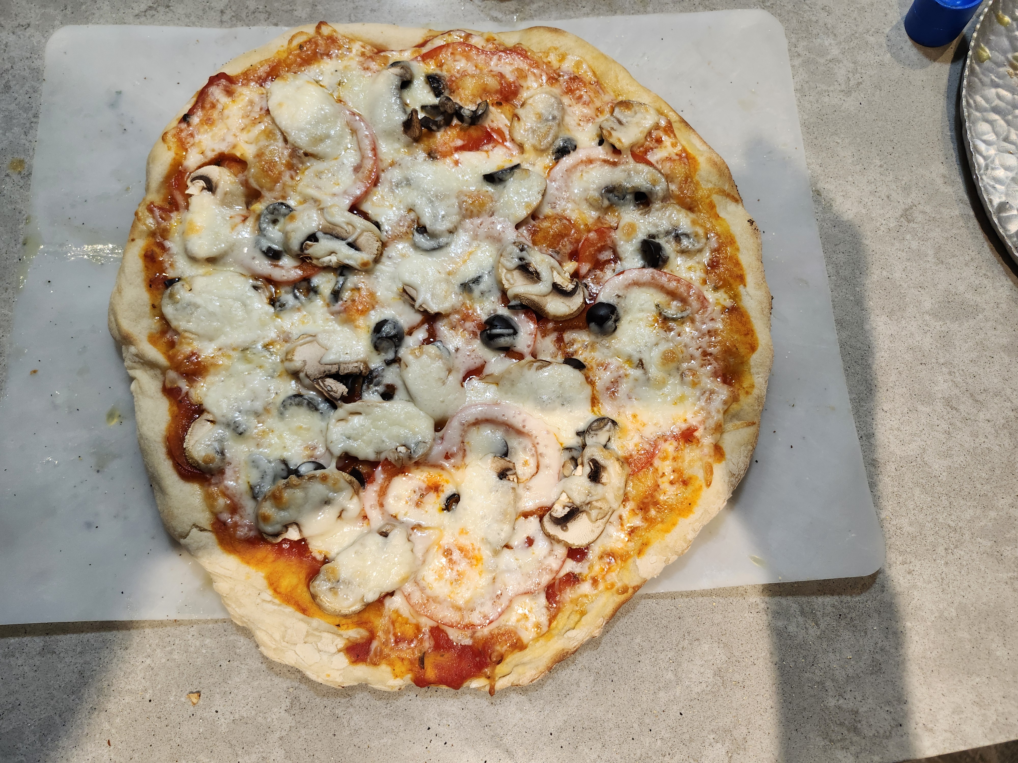 - Standard Red - Red Sauce, Red Pepper, Mushrooms, Black Olives, and Mozzarella
